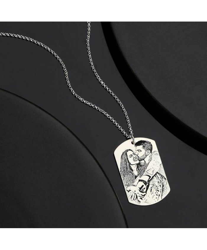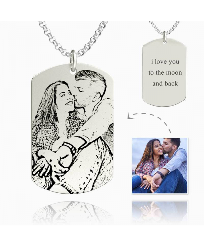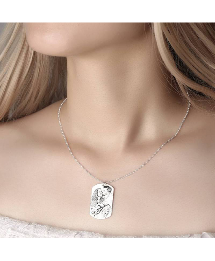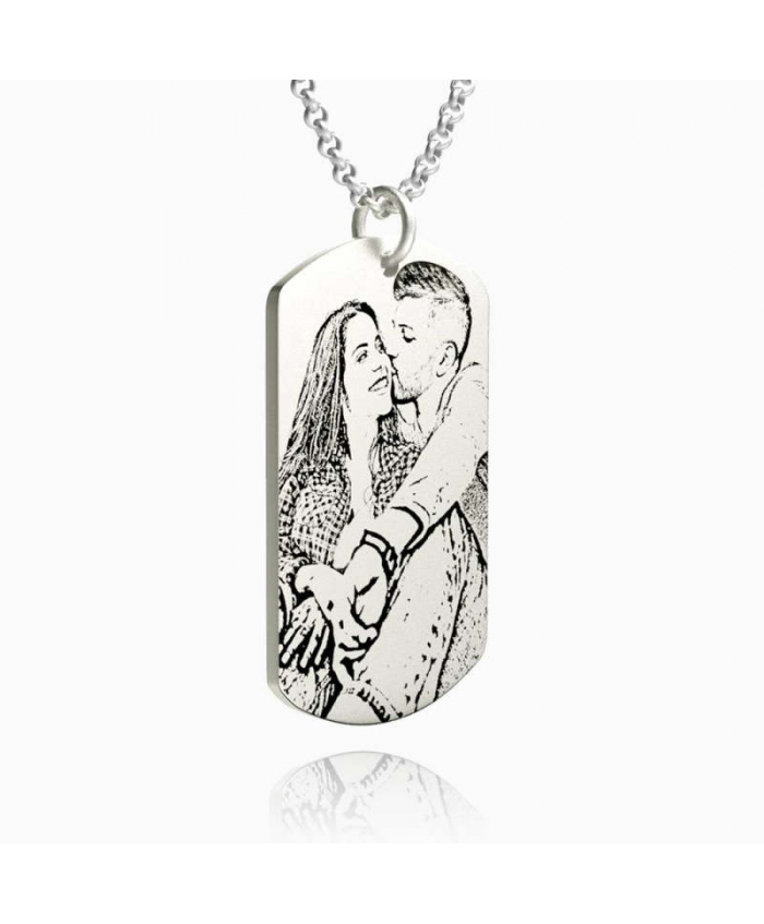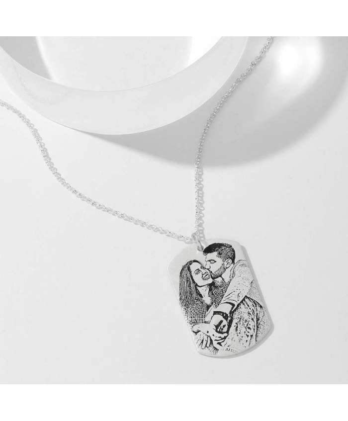 Women's Women's Photo Engraved Tag Necklace With Engraving Silver